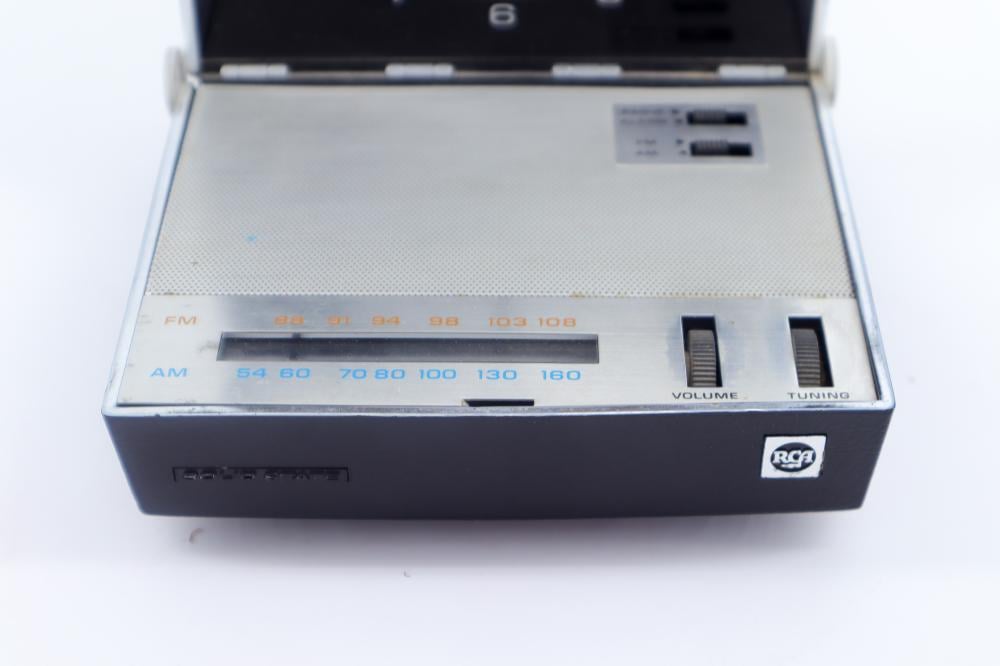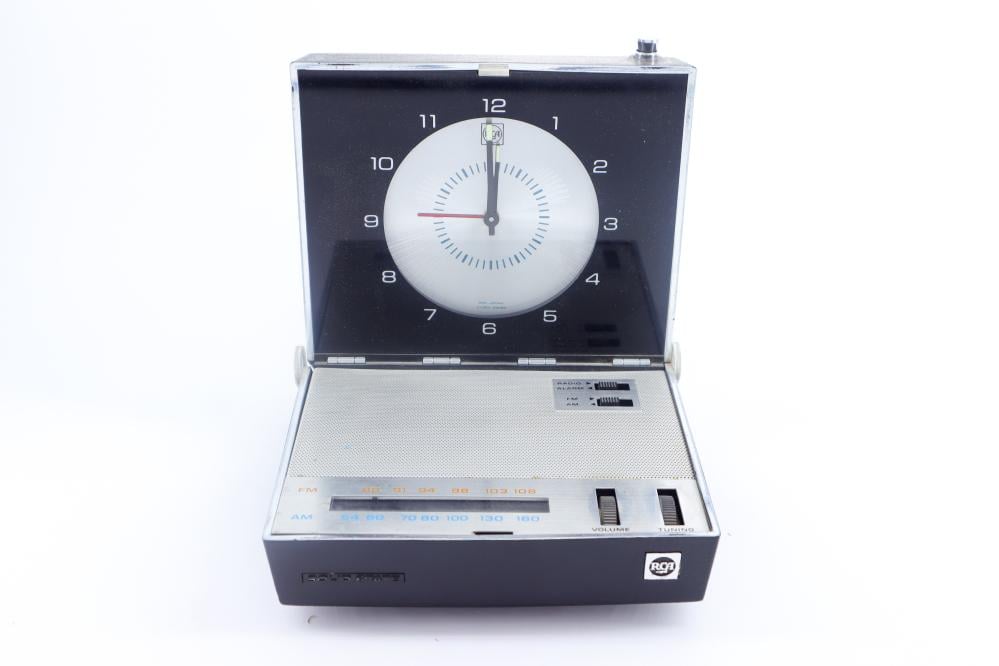 راديو ترانزستور مع ساعة منبه صناعة الستينات قابل للطي موجات AM, FM